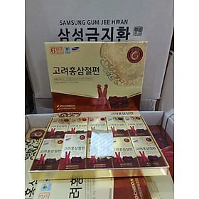 Hồng sâm củ khô hộp thiếc 37.5g Thành phần: - 100% nhân sâm Hàn Quốc qua quá trình hấp sấy thành hồng sâm củ khô nguyên chất, được sấy khô và đóng hộp gỗ bên
