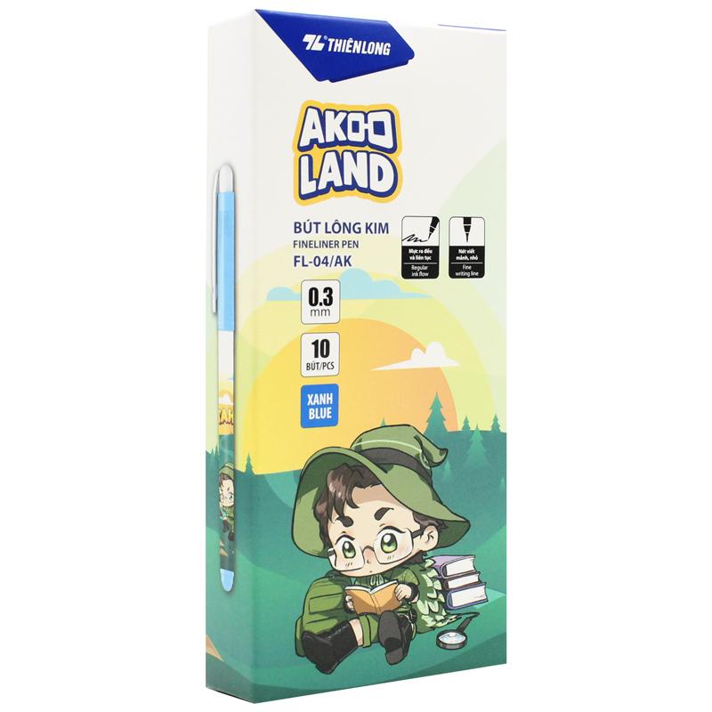 Mua tại TiktokHộp 10 Bút Lông Kim 0.3 mm - Nhân Vật Akooland Tahi - Thiên Long FL-04/AK - Mực Xanh được thiết kế vừa lòng bàn tay của các em học sinh tiểu học, nhất là các bé đang trong trong giai đoạn luyện viết.
