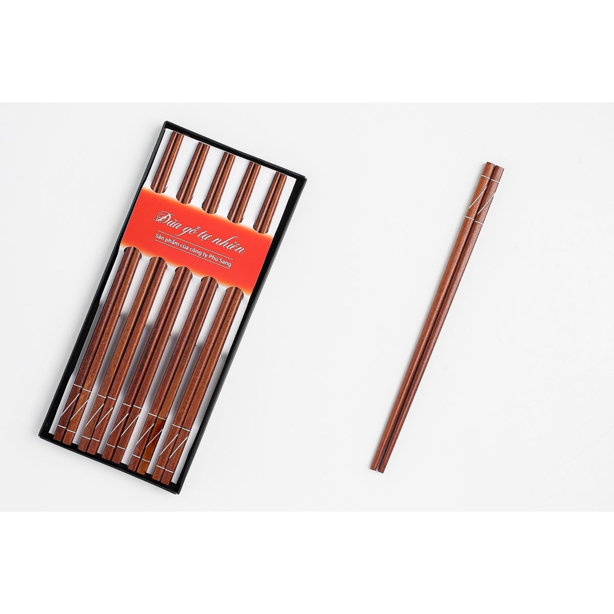 Đóng gói: Đũa được đóng 10 đôi/ hộp: Hộp đũa sang trong mang nhãn hiệu độc quyền Phú Sang, sản phẩm xứng đáng được lựa chọn làm quà tặng cho những người thân yêu.