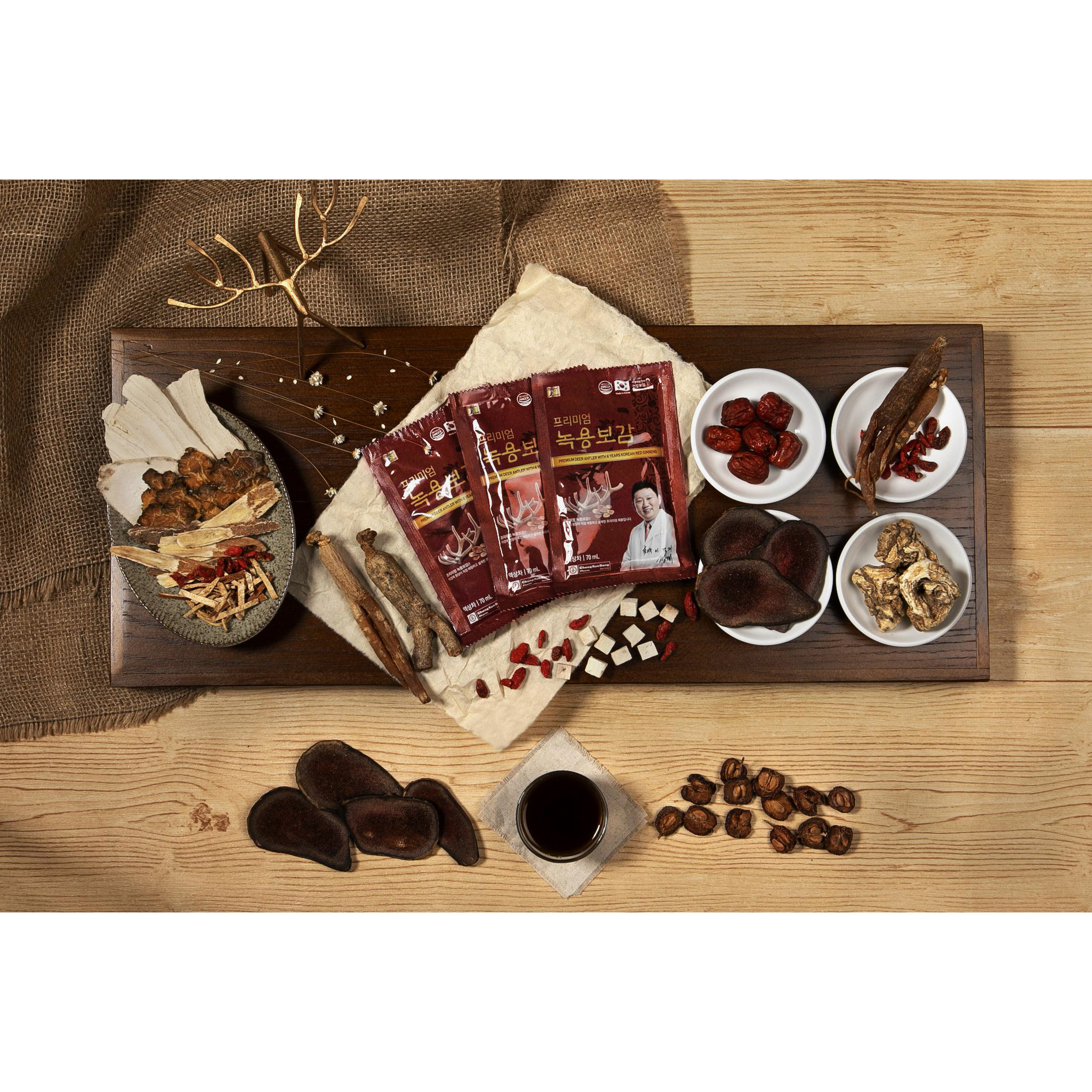 Premium Deer Antler With 6 Years Korean Red Ginseng Chiết Xuất Nhung Hươu Và Hồng Sâm Hàn Quốc 6 Năm Tuổi Quy cách: 1 HỘP 30 gói ( gồm 3 hộp lớn, mỗi hộp chứa