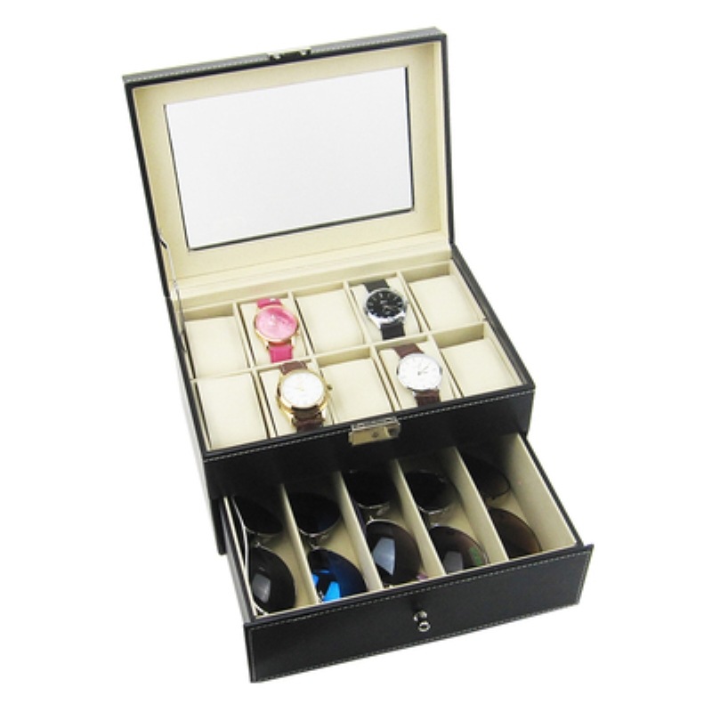 ✨Hộp 2 Tầng Đựng Đồng Hồ Và Mắt Kính SAIKE SAIKE S555 Vỏ Da Màu Đen