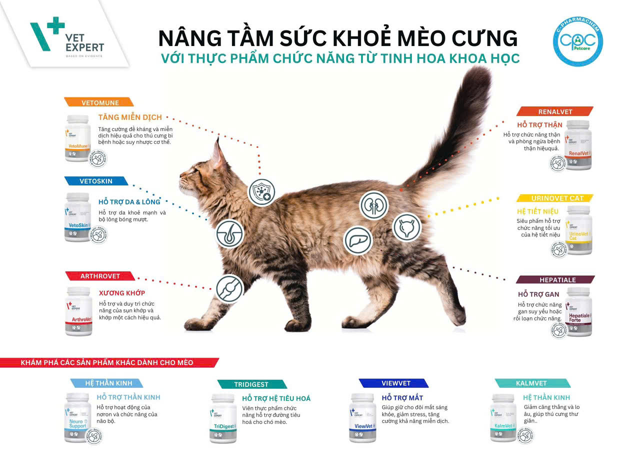 VetoMune Sản phẩm tăng cường miễn dịch cho chó mèo Tác dụng kích thích miễn dịch hai hướng. Kích thích miễn dịch dịch thể và tế bào cho chó mèo. Phù hợp cho thú cưng
