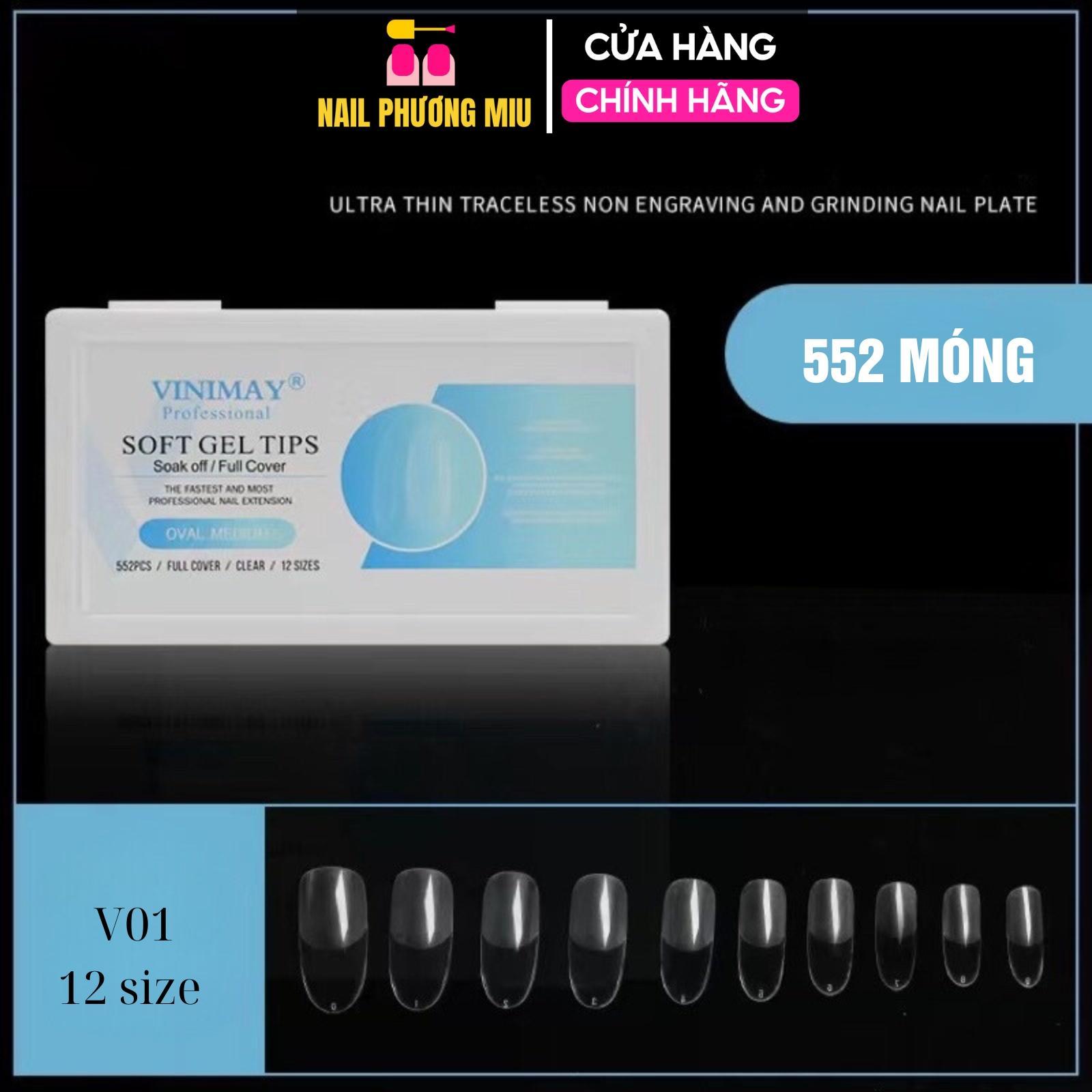 ✨Hộp 552 Móng Úp Vinimay Form Bầu Tròn Trong V01 Siêu Mỏng Dẻo Cao Cấp Làm Nail Đủ 12 Size Dài Ngắn Oval Medium Soft Gel Tips Nữ Women
