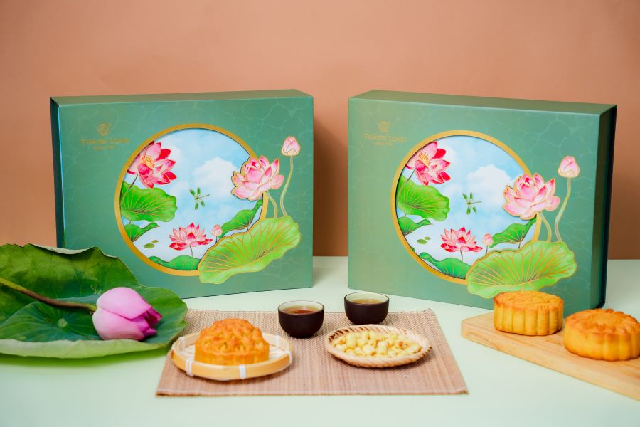 Hộp bánh trung thu 2 bánh 2 trứng 220g - Thành Long (440g) - Combo C: gồm Nhân hạt sen 2 trứng 220g Nhân khoai môn 2 trứng 220g - Combo D: gồm Nhân thập