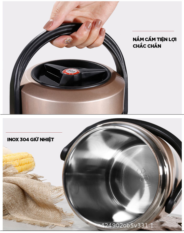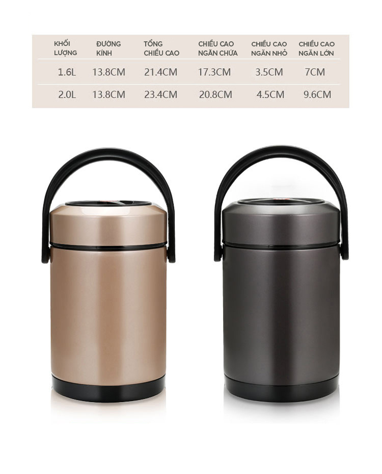 Bộ Hộp Cơm Giữ Nhiệt - dung tích 1.6L nặng 1.1kg - Bộ Hộp Cơm Giữ Nhiệt - (.) sản xuất tại Hàn Quốc. - Bộ Hộp Cơm Giữ Nhiệt - chất liệu thép không