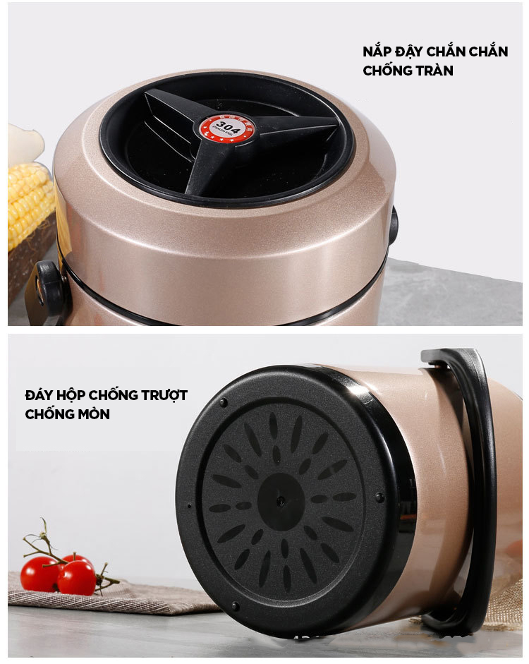 Lồng cơm giữ nhiệt, hộp cơm văn phòng cặp lồng chia 3 ngăn chất liệu inox 304 #dodungthongminh