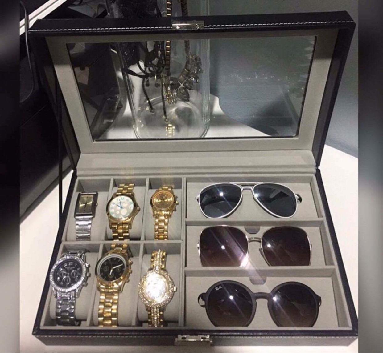 Bạn có khoảng 6-8 chiếc đồng hồ và phụ kiện trang sức như nhẫn, vòng ùng với đó bạn thích hộp có mặt kính để nhìn thấy phụ kiện bên trong hộp và hộp có
