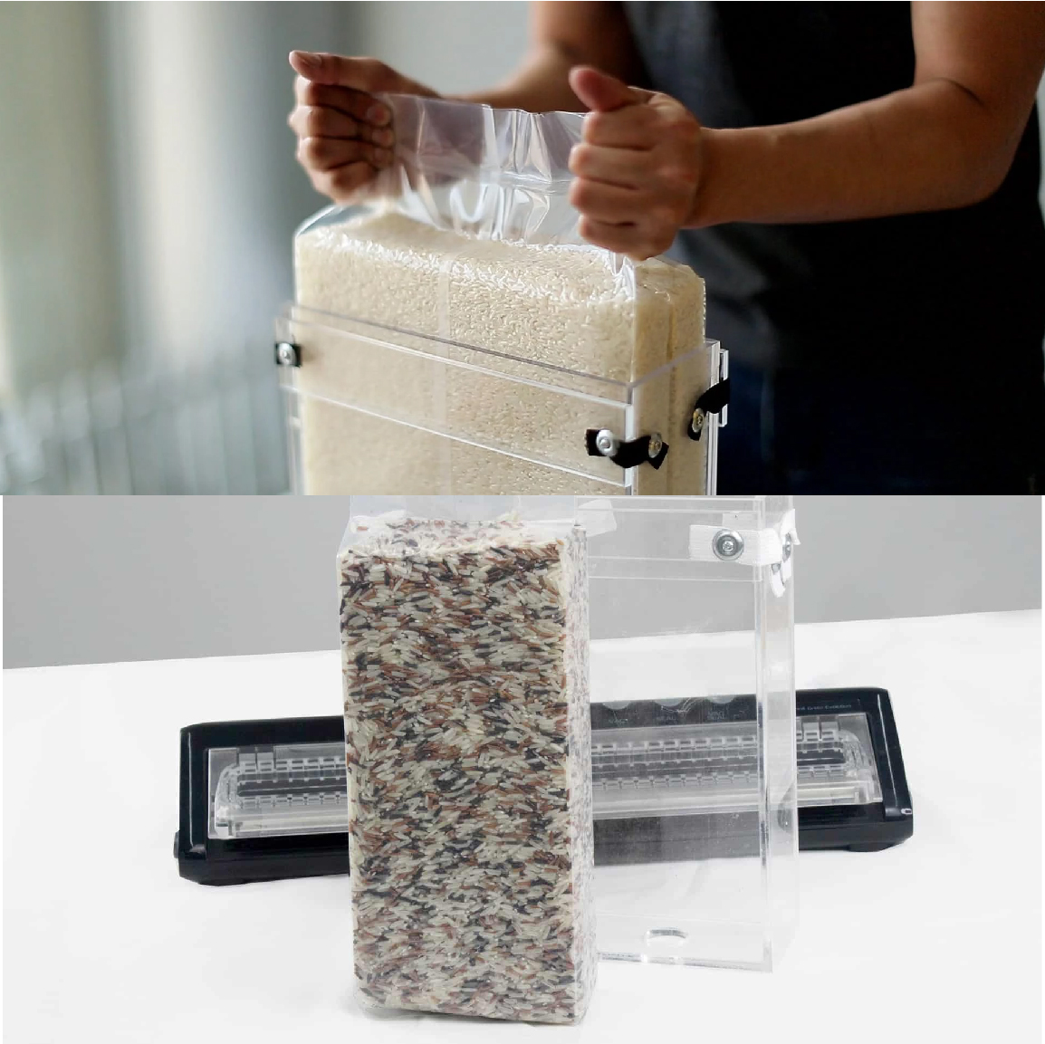 Mua tại TiktokHộp định hình gạo (Rice Box) Hộp định hình gạo là gì? Một trong những phương pháp hiệu quả giúp tăng giá trị sản phẩm là làm tăng tính thẩm mỹ của sản phẩm đó, cũng tức là làm cho sản phẩm đẹp hơn thông qua quy trình đóng gói. Thử nghiệm hút chân không hộp định hình gạo với máy hút chân không VCX Túi gạo được đóng gói vuông vắn, đẹp mắt, giúp tăng giá trị sản phẩm