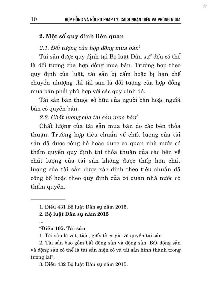 Mua tại TiktokNhằm giúp bạn đọc có được các thông tin hữu ích về vấn đề trên, Nhà xuất bản Chính trị quốc gia Sự thật xuất bản cuốn sách Hợp đồng và rủi ro pháp lý: Cách nhận diện và phòng ngừa, do Luật sư Trương Ngọc Liêu biên soạn. Cuốn sách trình bày những quy định về các loại hợp đồng thông dụng (hợp đồng mua bán, tặng cho, vay mượn, ủy quyền tài sản,...), các loại hợp đồng đặc thù (hợp đồng liên quan đến bất động sản, bảo hiểm); phân tích và làm rõ những rủi ro phát sinh thường gặp, đưa ra một số biện pháp kiểm soát, phòng ngừa rủi ro khi soạn thảo, ký kết hợp đồng.