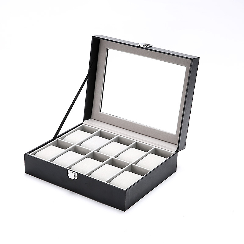 Hộp Đựng Đồng Hồ Nhung Đen - 10 Ngăn . Vỏ Da Cao Cấp
