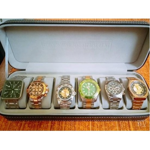 - Hộp Đựng Đồng Hồ 6 Ngăn SAIKE S606 Vỏ Da Có Khóa Kéo