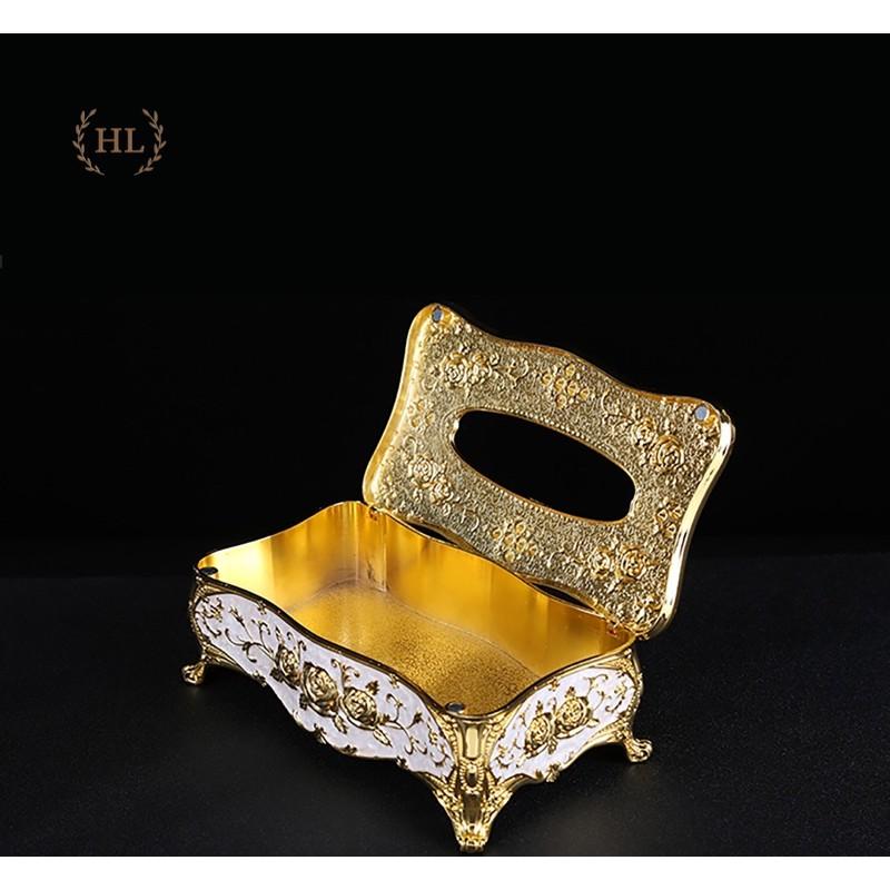 Hộp giấy ăn HADU hợp kim kẽm Hoàng Gia hoa văn thủ công tinh xảo có nắp đậy gắn nam châm cao cấp