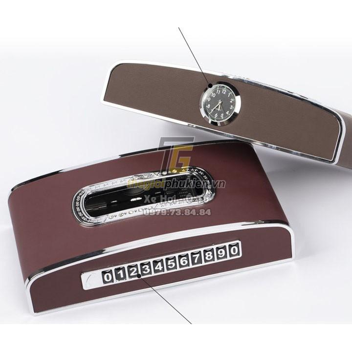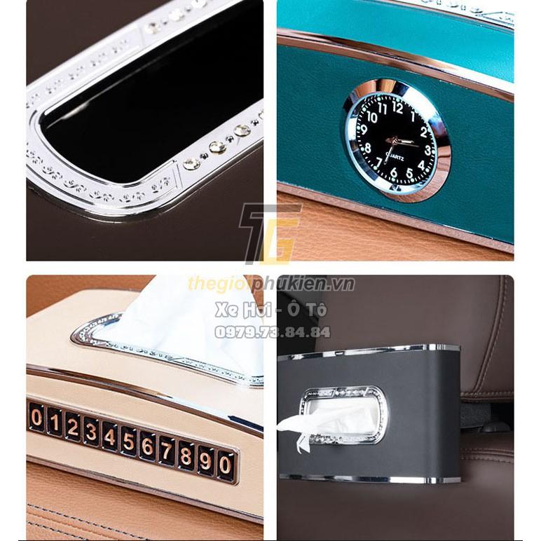 Mua tại TiktokSản phẩm được làm bằng chất liệu nhựa gia dụng PP tổng hợp, bọc da chống thấm nước, có độ bền cao. Đường đai trang trí được mạ Crom sáng bóng và đẹp mắt. Bên trong: là lớp nhung mềm mại sạch sẽ, dưới đế sẽ có nắp mở để bạn đặt khăn giấy vào trong. Thiết kế nhỏ gọn, tiện dụng, giúp bạn trang trí không gian sống gọn gàng. Hộp đựng khăn giấy có thể để ở nhiều vị trí trên xe như: mặt taplo, tỳ tay, treo sau gối đầu, gắn trên tấm chắn nắng… Sản phẩm Fullbox bao gồm: 1 hộp đựng khăn giấy 3 trong 1, 5 dãy chữ số (đáp ứng được cả những bạn dùng sim điện thoại đến lục quý), 1 xấp khăn giấy, 1 catalogue hướng dẫn sử dụng, 1 bộ giá kẹp, 1 đế cao su chống trượt. Sản phẩm có 6 màu: Đen, Nâu, Đỏ mận, Xanh rêu, Kem, Ghi.