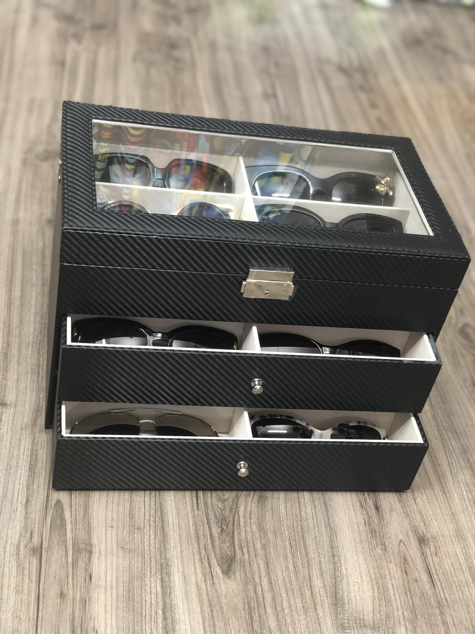 ✨Hộp Đựng Mắt Kính 3 Tầng Đựng 18 Kính SAIKE SAIKE S318 Bọc Da Carbon Màu Đen