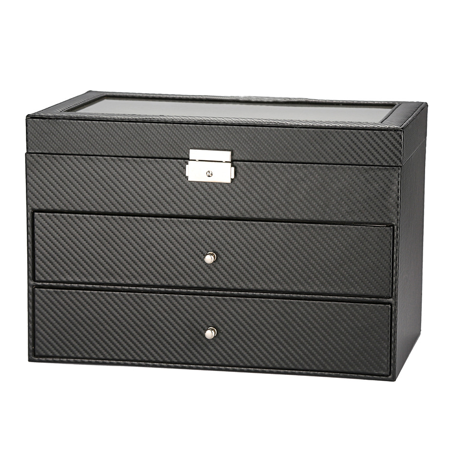 Hộp Tủ Đựng 18 Mắt Kính 6 Đồng Hồ & Trang Sức - 4 Tầng Vỏ Da Carbon - DHK4T