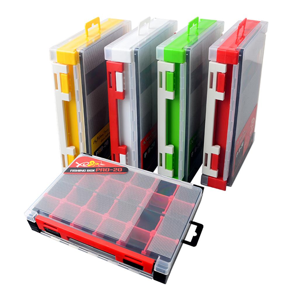 Double-sided fishing box helps keep your fishing accessories organized. Features: High-strength plastic material for durability. Double sided design keep your fishing accessories organized. Clear lids make the contents visible. Built-in drainage holes keep the box