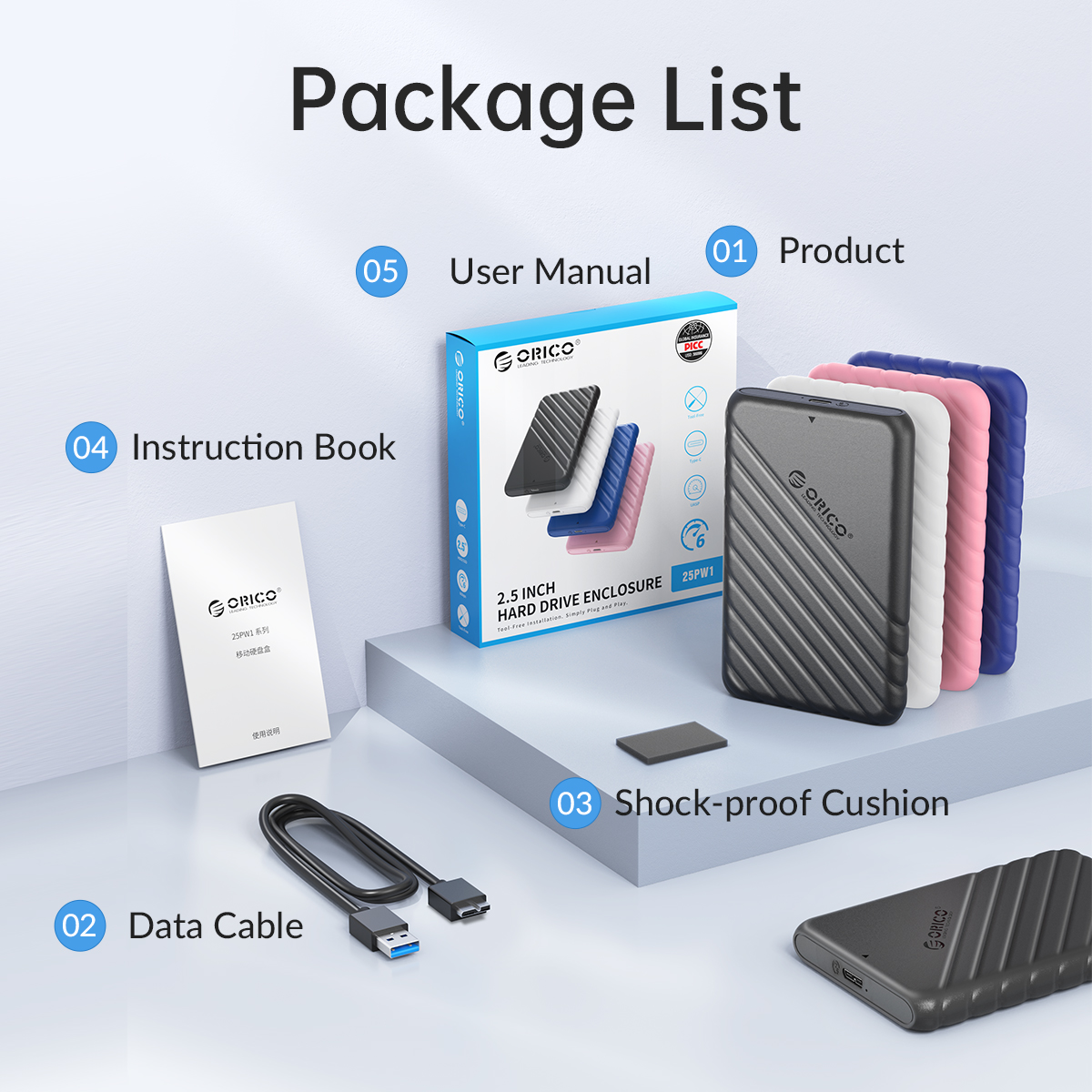 - Tương thích: 2.5" SATA HDD/SSD with thickness 7mm-9.5mm GIỚI THIỆU SẢN PHẨM ️ Công Dụng: HDD Box ORICO 25WP1 là sản phẩm được thiết kế ra để có thể chuyển đổi chuẩn giao tiếp từ cổng Sata III của ổ cứng HDD, SSD sang chuẩn USB. Giúp chúng ta có thể sao chép dữ liệu, chuyển đổi ổ cứng, có thể làm ổ cứng di động tiện lợi. Truyền dữ liệu nhanh HDD Box ORICO USB3.0/2.5 - Trang bị chuẩn USB 3.0, tốc độ truyền dữ liệu 5Gbps. Thoải mái copy dữ liệu với tốc độ cao, chuyển đổi 1G dữ liệu chỉ trong vòng 2-3S ️Thiết Kế nhỏ gọn xinh xắn và nổi bật Hdd box Orico 25WP được thiết kế với kiểu dáng nhỏ gọn với chất liệu nhựa ABS cao cấp đem tới độ bên cực cao cũng như cho trọng lượng nhẹ phù hợp mang tính di động cao nên bạn có thể mang theo sử dụng bất kỳ khi nào. ️ Free Enclosure từ Orico Việc lắp đặt và sử dụng Orico 25WP cũng cực kì dễ dàng, chỉ với 3 bước đơn giản là người sử dụng có thể kết nối ổ cứng thông qua chiếc box ổ cứng này mà không cần phải sử dụng bất kì công cụ nào khác. ️Hỗ trợ & Đảm bảo tốc độ với cáp chính hãng kèm theo. Kết nối với PC hay laptop như một ổ cứng di động, Kết nối với TI Vi như một trung tâm lưu trữ dữ liệu, Hay kết nối với máy chơi game PS4 như cổng cài đặt thay cho đĩa cài đặt ️Công nghệ và chứng chỉ nổi bật. Không những vậy, Orico 25WP còn được tích hợp nhiều tính năng bảo vệ để đảm bảo an toàn cho người sử dụng lẫn thiết bị kết nối với nhiều tính năng bảo vệ như bảo vệ quá áp, quá nhiệt, chống sốc, chống rò điện, đoản mạ