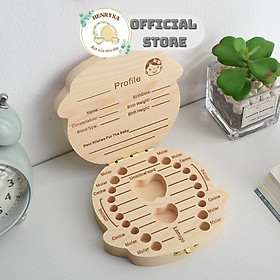 HỘP GỖ ĐỰNG RĂNG SỮA xinh xắn ngoài các lỗ nhỏ đựng răng còn đựng được tấm ảnh, rốn, dây tay, trên hộp còn khắc được những thông tin như: họ tên, ngày tháng năm sinh, nickname, chiều cao, cân nặng, giờ sinh, bệnh viện…ất hữu ích giúp cho ba mẹ dễ dàng ghi nhớ.