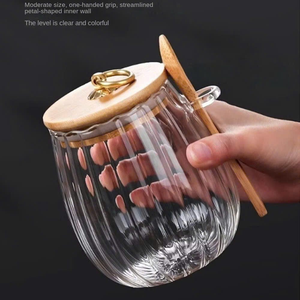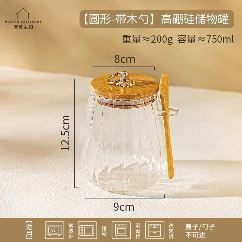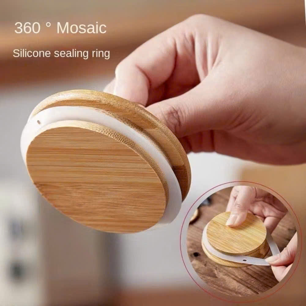 Hộp Đựng Thực Phẩm Có Thìa, Bảo Quản Nhà Bếp, Nắp Gỗ Bền Chống Ẩm, Nắp Thủy Tinh Kín Khí - Hộp Hạt Cà Phê Đậu