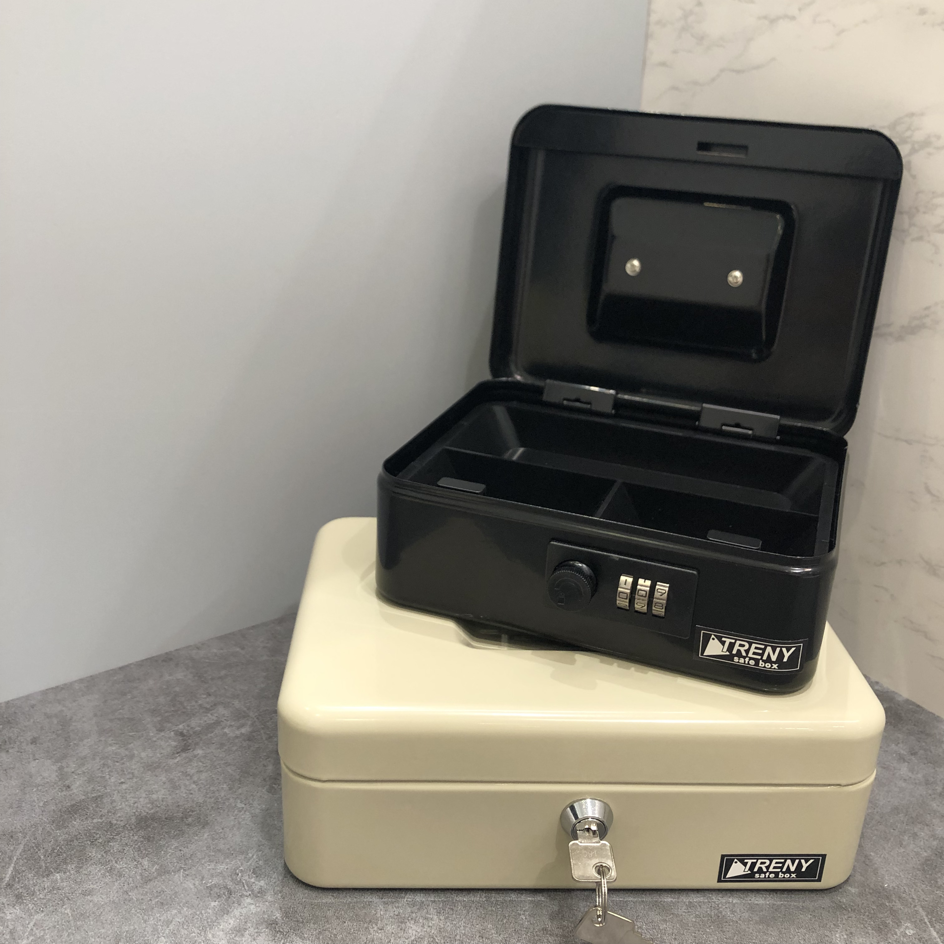 Hộp cất giữ tiền mặt Khóa mật khẩu - Khóa chìa - Màu đen - Màu be