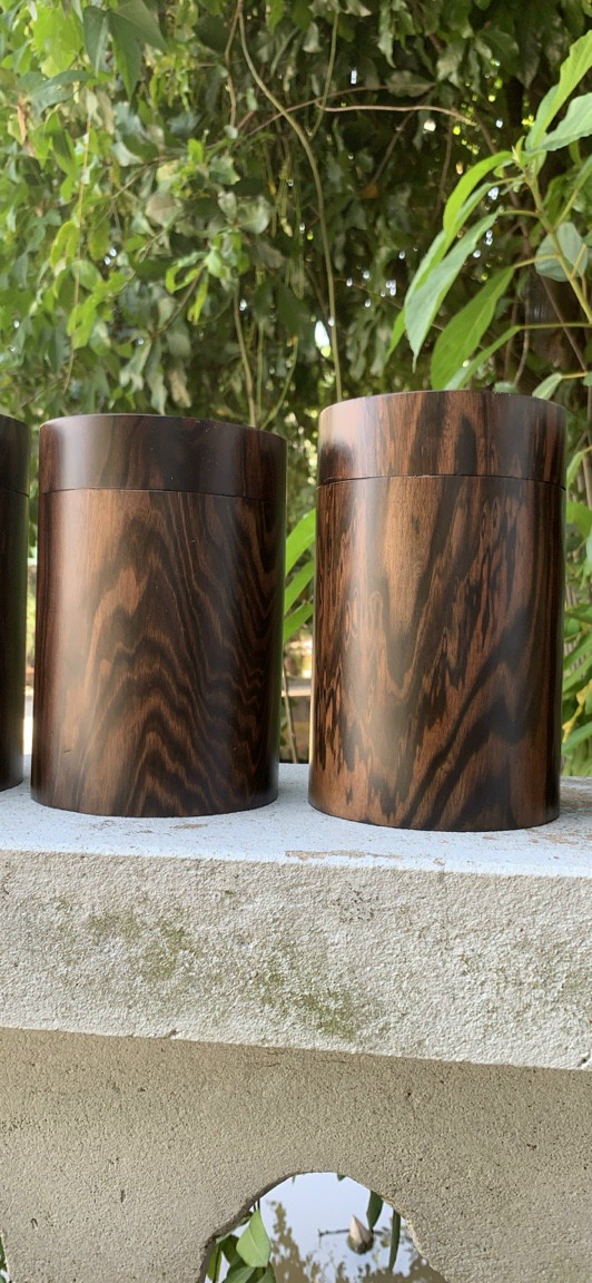_ Hộp đựng trà ,đựng trà được làm bằng chất liệu gỗ trắc tự nhiên 100% ,Và được làm bóng mờ giữ lại vân gỗ tự nhiên Kích thước: Cao 20cm x đường kính 11cm