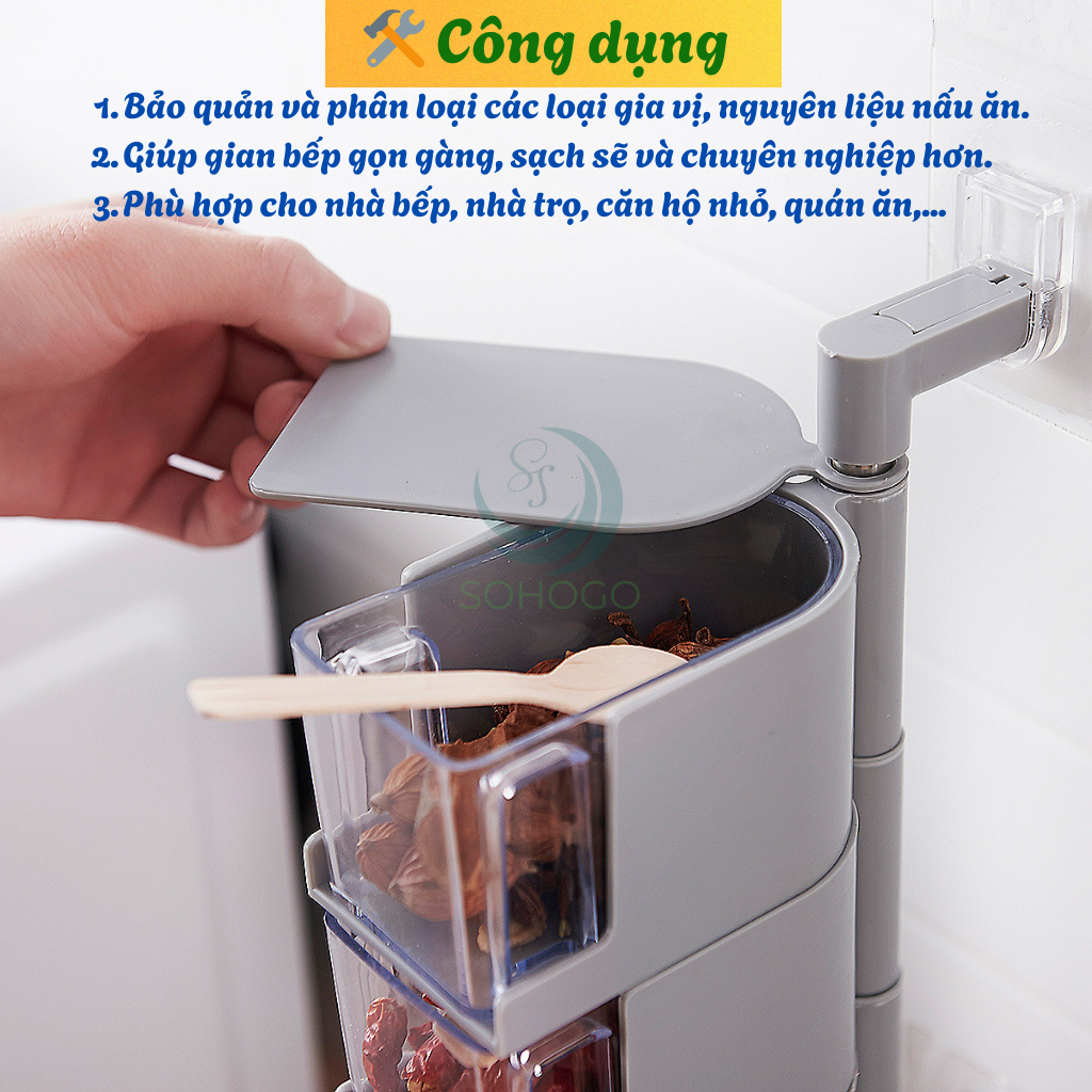 - Lấy gia vị tiện lợi: Có thể xoay từng ngăn, thao tác bằng một tay.