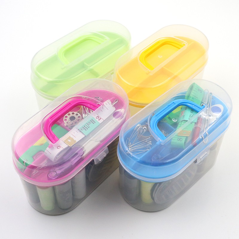 Bao gồm: 08 cuộn chỉ các màu. 01 hộp kim may. 01 kéo. 01 thước dây. 10 kim băng. 02 cúc áo. 01 nhẫn ấn kim...