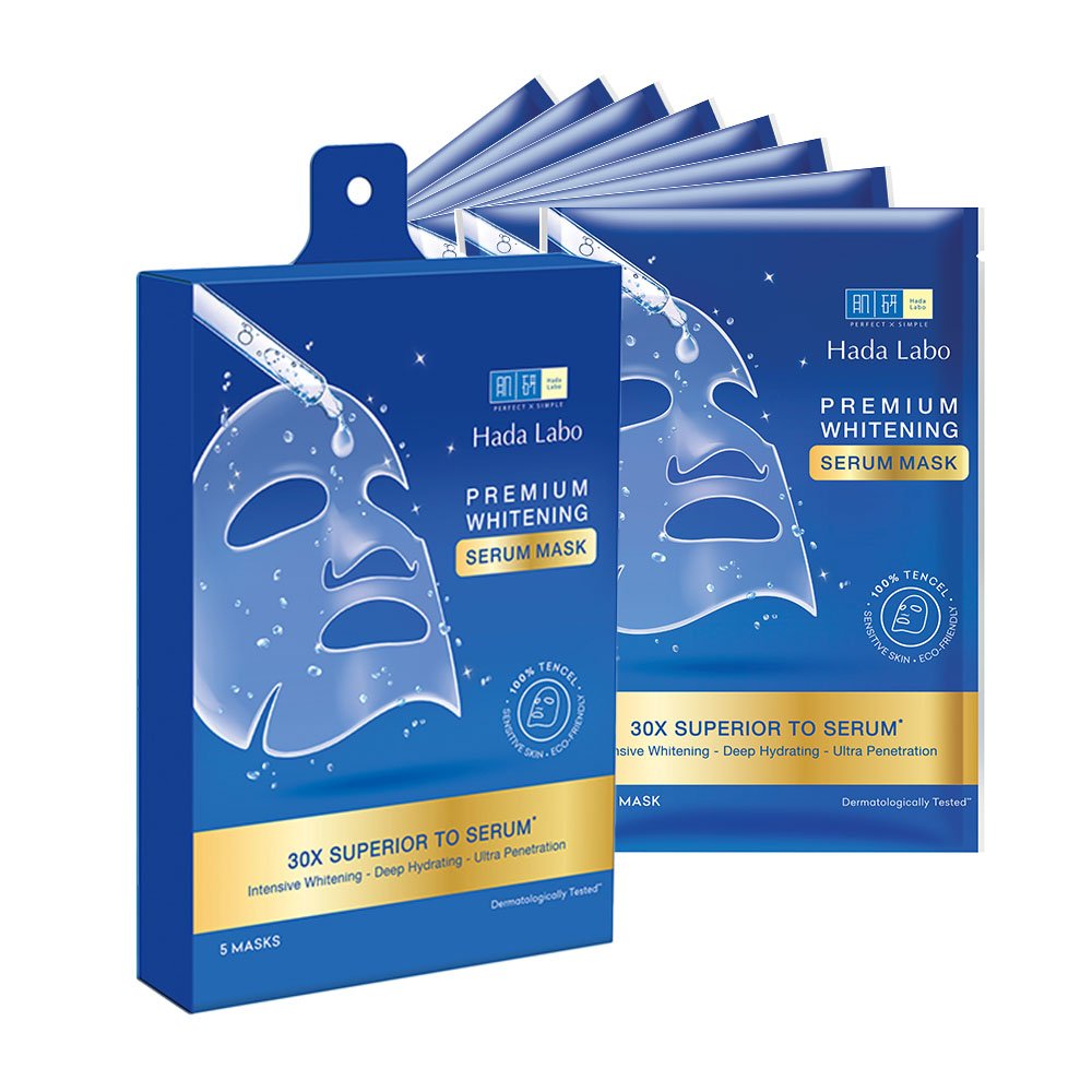 ✨Hộp mặt nạ dưỡng trắng chuyên sâu Hada Labo Premium Whitening Serum Mask 115g (hộp 5 miếng x 23g/ miếng)