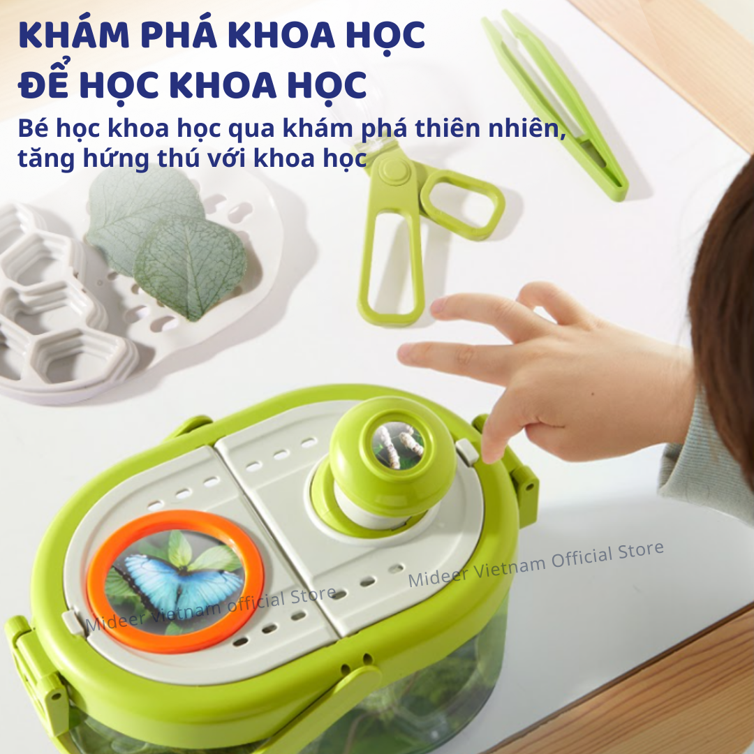 Mua tại Tiktok"CHÀO MỪNG BẠN ĐẾN VỚI MIDEER VIETNAM HÀNG SẴN SHIP HỎA TỐC, BẢO HÀNH CHÍNH HÃNG ————————————— Hộp nuôi côn trùng Mideer insect box Hộp nuôi côn trùng, công cụ khám phá khoa học giúp bé quan sát thế giới tự nhiên một cách sinh động! Với thiết kế đa chức năng, ống kính HD kép, góc nhìn 360 độ và các ngăn phân chia thông minh, hộp nuôi này cho phép bé tìm hiểu về côn trùng an toàn và thú vị. Khơi dậy niềm đam mê khoa học và khám phá ngay từ nhỏ! 10 Lý do ba mẹ nên chọn Hộp nuôi côn trùng Mideer Insect Box cho con?