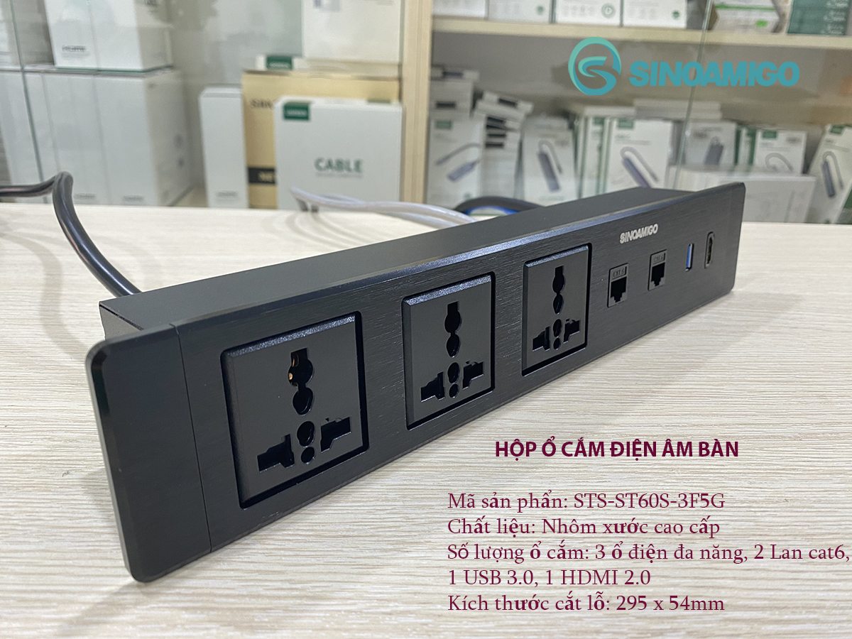 Hộp ổ cắm âm bàn Sinoamigo STS-ST60S-3F5G - Tiện ích đa năng cho không gian làm việc
