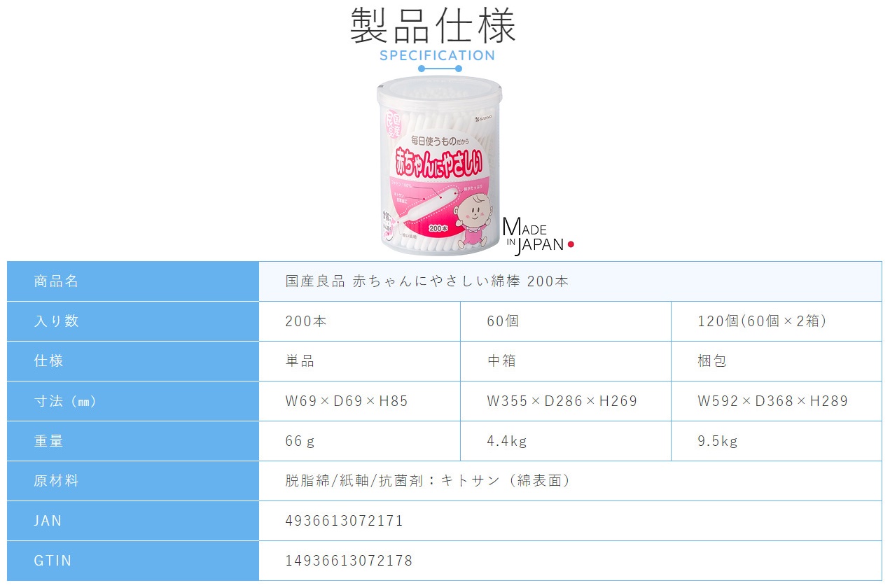 Khả năng thấm hút nước vượt trội giúp cho việc vệ sinh tai, mũi cho bé một cách nhanh chóng & hiệu quả, nắp hộp được thiết kế dạng trượt nên đảm bảo vệ sinh vì nó có thể được lấy ra mà không cần chạm tay vào phần bông.