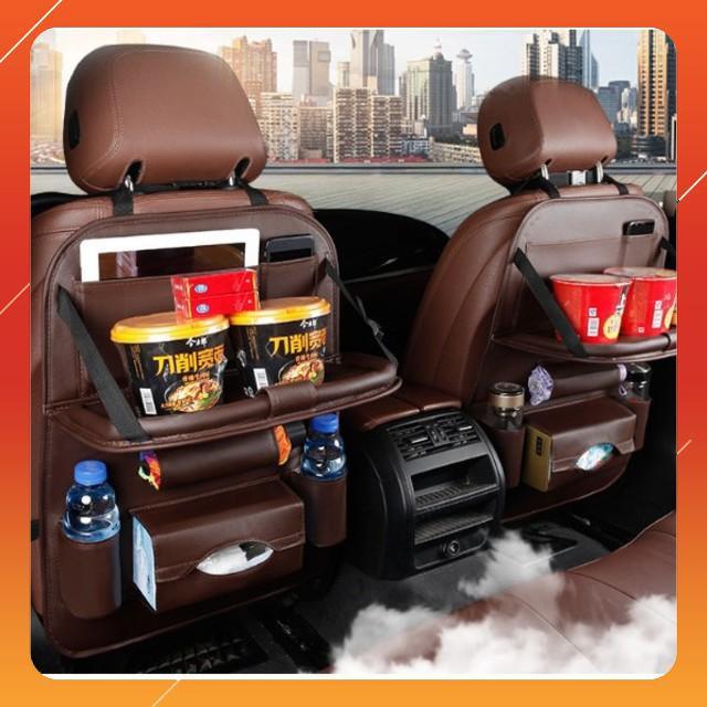 ✨Hot Túi đựng đồ sau ghế xe ô tô có bàn gập da PU cao cấp (Black) Sky Life