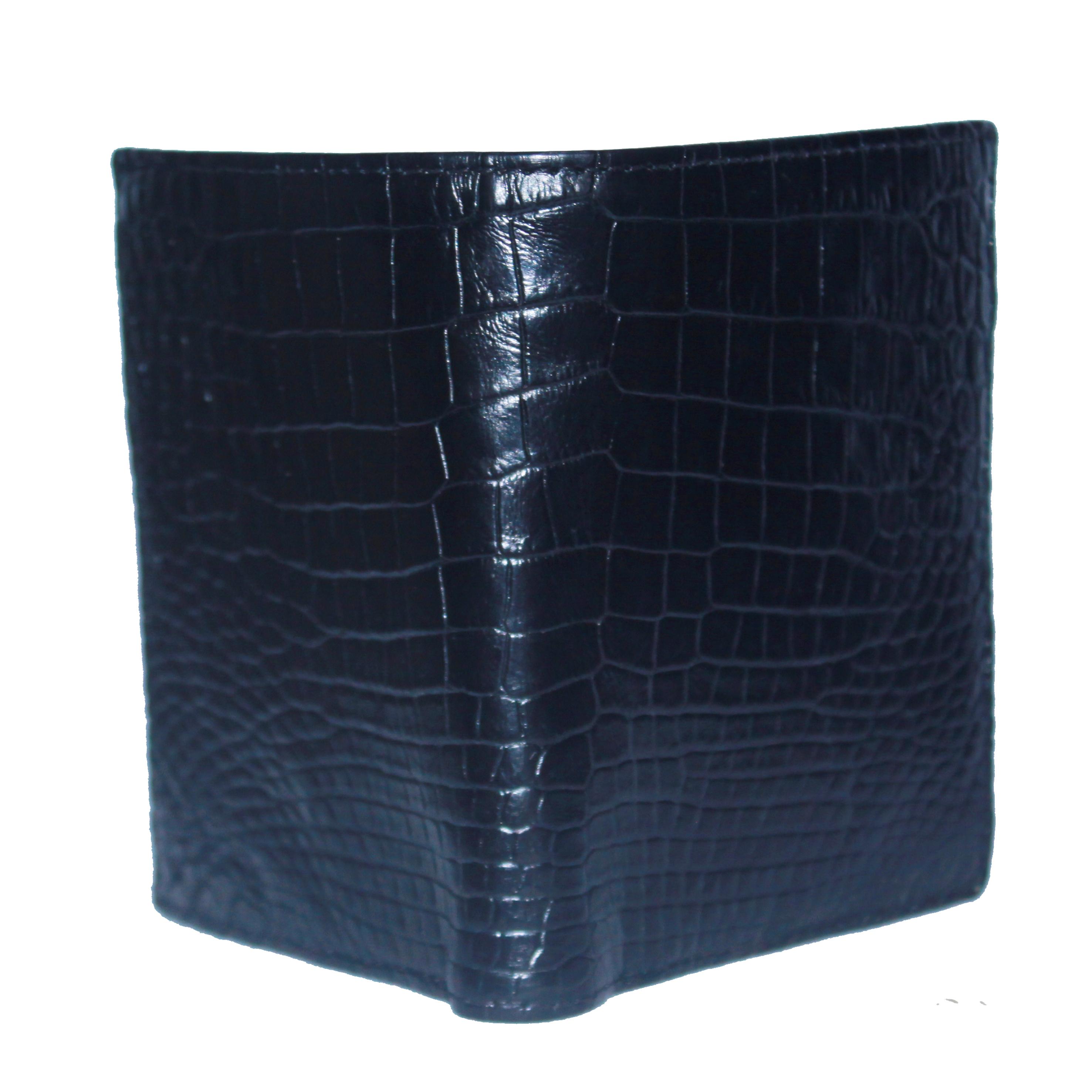 Bóp/Ví da cá sấu Huy Hoàng đan viền da bụng màu đen, nâu đất, nâu đỏ, vàng bò 2254-2711-2712-2713