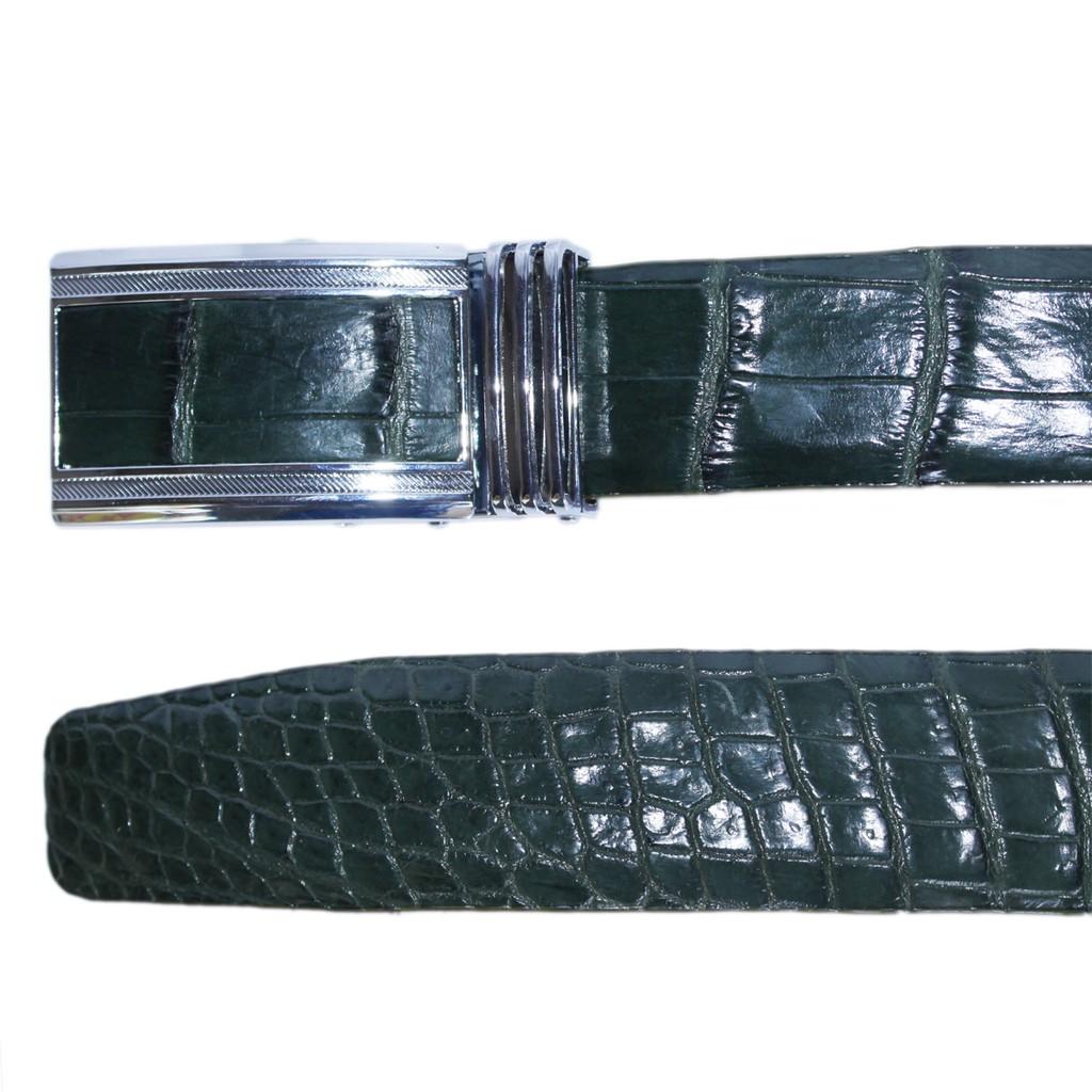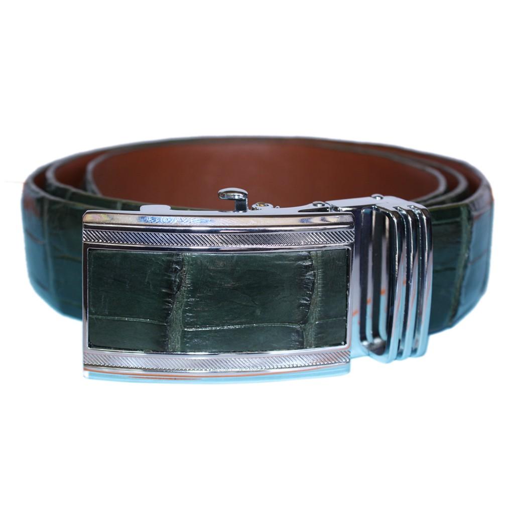 ✨HP4827 - Dây nịt nam da cá sấu Huy Hoàng nguyên con bụng 4P màu xanh rêu