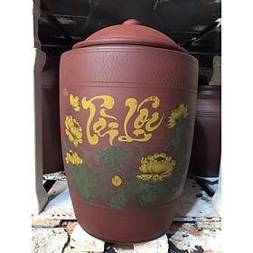 Hũ đựng gạo tài lộc vẽ sen 10kg gốm Gia Hưng Bát Tràng