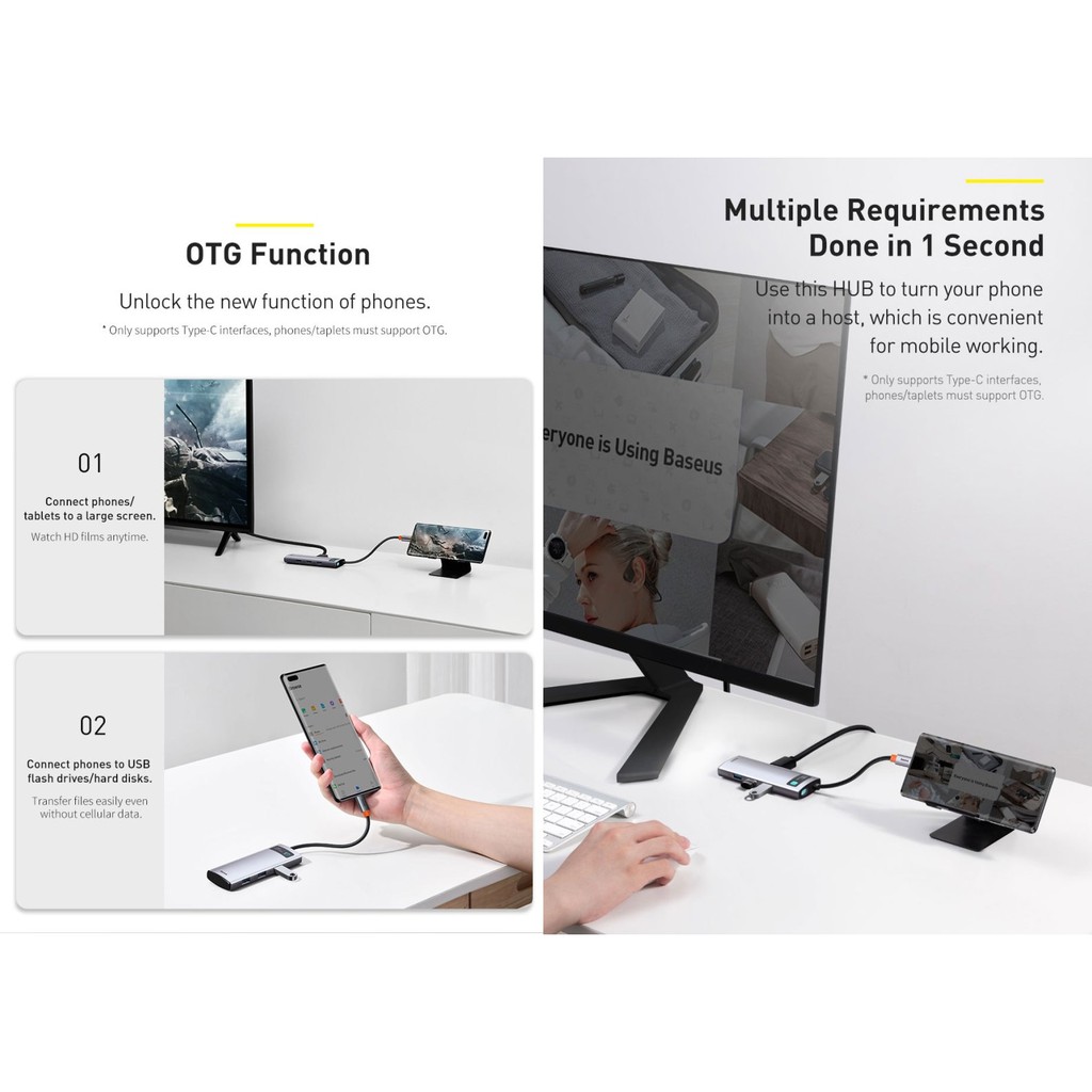 Baseus HUB USB Type C Sang HDMI-Tương Thích USB 3.0 Adapter 6 Trong 1 Loại C HUB Cho macBook Pro Air