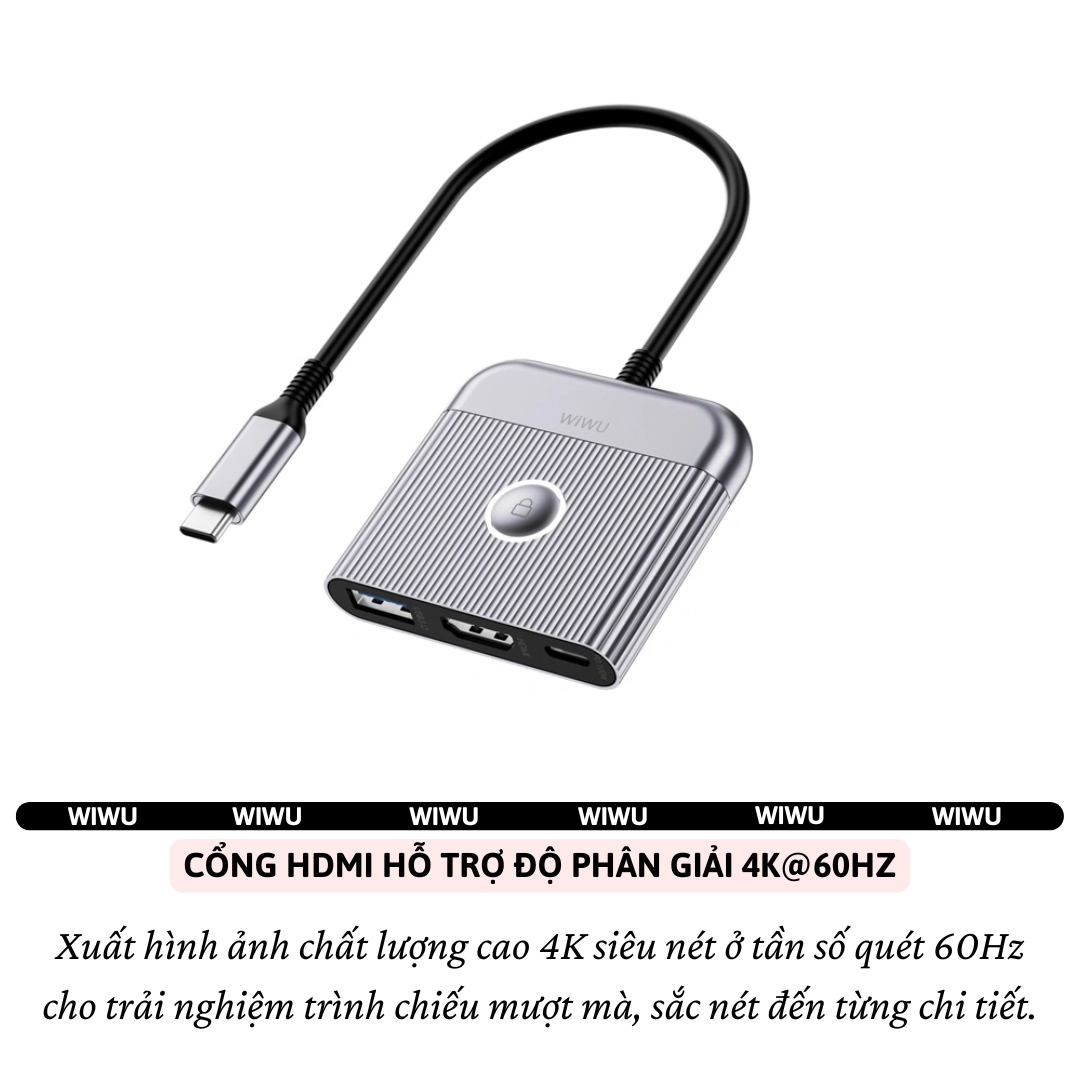 ✨Hub chuyển đổi chia cổng Type-C chia cổng 3in1 HDMI 4K@60Hz + PD 100W Type-C + USB 3.0 hiệu WIWU Travel Docking cho Macbook Laptop cho iPhone - Hợp kim nhôm nguyên khối, KẾT NỐI CHUYÊN NGHIỆP CHO DÂN VĂN PHÒNG & NGƯỜI HAY DI CHUYỂN - Hàng nhập khẩu