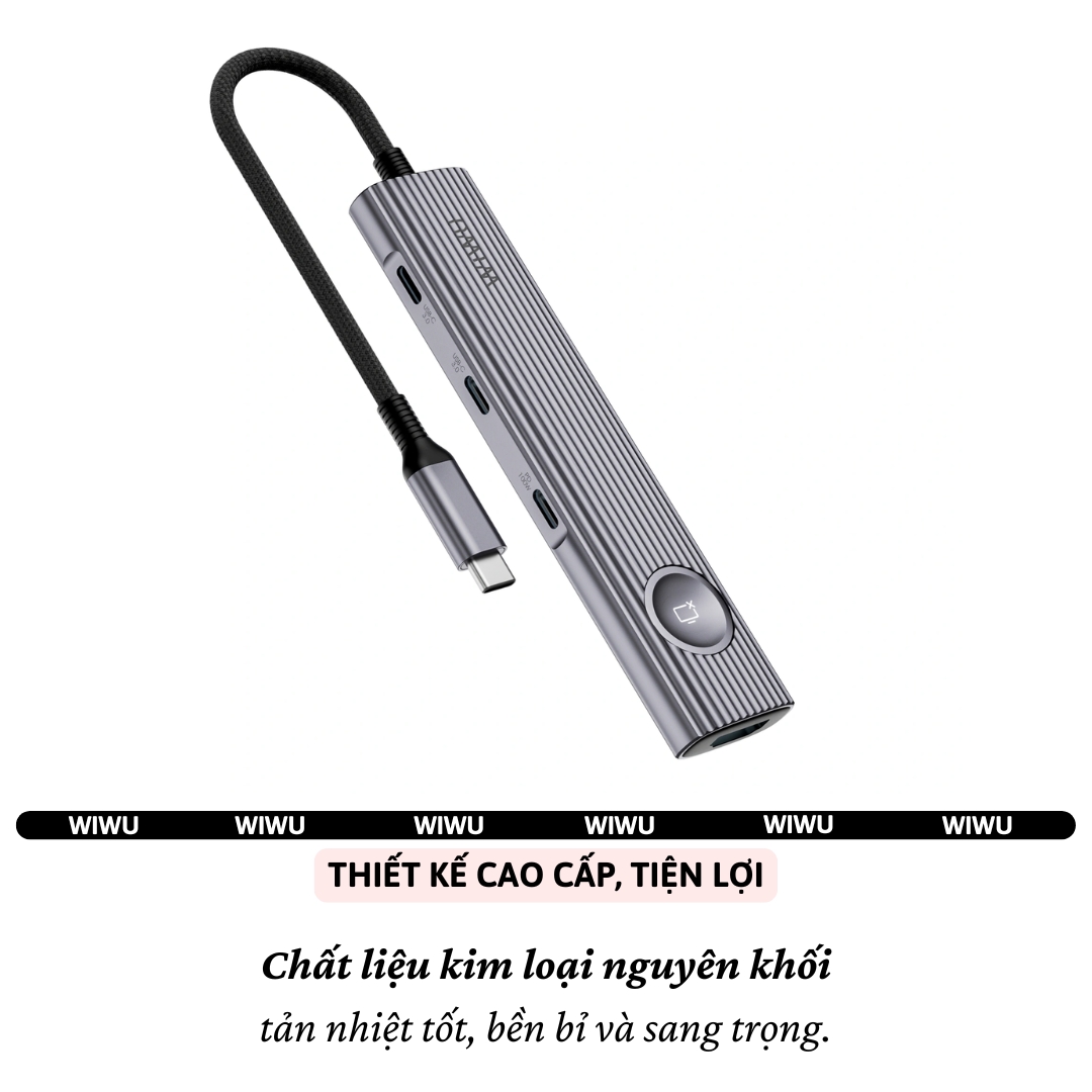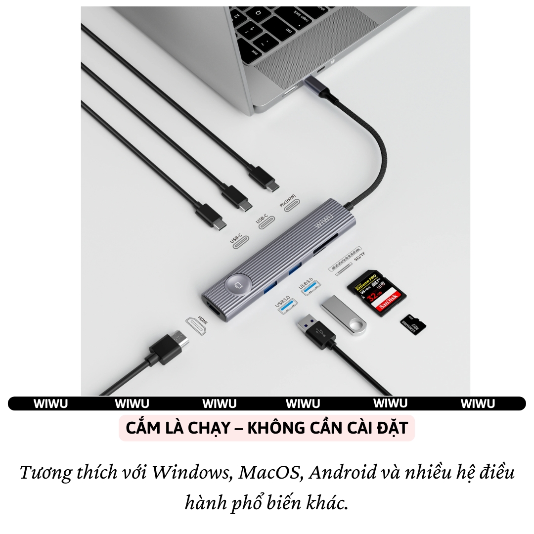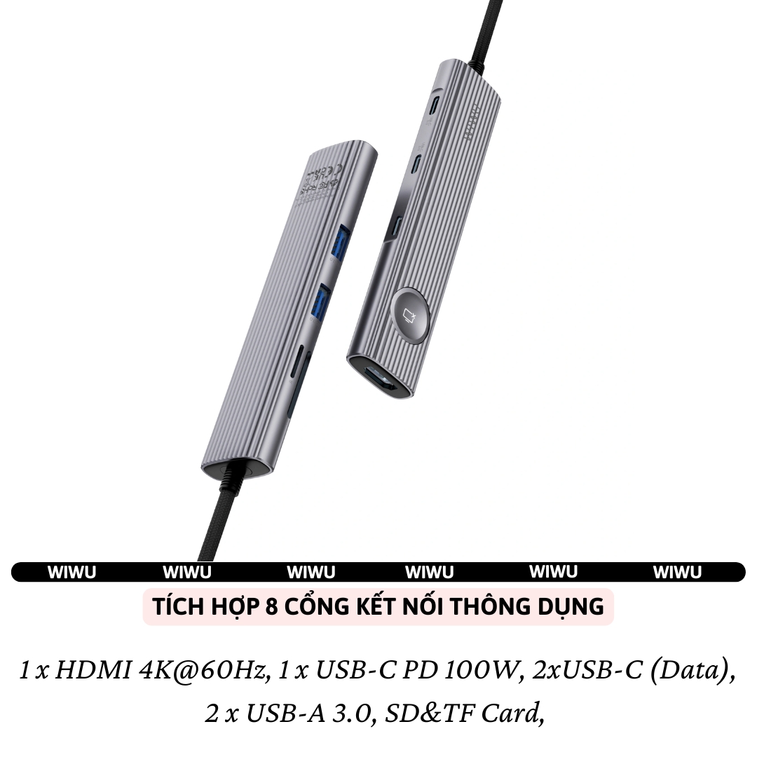 HUB MỞ RỘNG WIWU TRAVEL 8 IN 1 DOCKING STATION – GIẢI PHÁP KẾT NỐI TỐI ƯU CHO DÂN CÔNG NGHỆ KẾT NỐI MỌI THIẾT BỊ – GỌN NHẸ CHO MỌI HÀNH TRÌNH Bạn đang sử dụng Macbook, laptop mỏng nhẹ hay tablet nhưng bị hạn chế cổng kết nối? WiWU Travel Docking Station sẽ là trợ thủ đắc lực – giúp bạn mở rộng tới 8 cổng trong 1 thiết bị nhỏ gọn, phục vụ từ làm việc văn phòng, họp trực tuyến cho đến chỉnh sửa ảnh, video chuyên nghiệp. TÍNH NĂNG NỔI BẬT: 8 cổng kết nối tiện lợi trong 1 thiết bị: