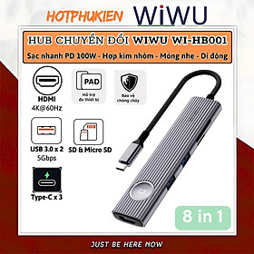 ✨Hub chuyển đổi chia cổng USB-C 8in1 sạc nhanh 100W trang bị 2 USB 3.0 + 3 PD Type-C + Micro SD SD + HDMI 4K@60Hz hiệu WIWU Travel cho Macbook Laptop cho iPhone - Hợp kim nhôm, đa năng để vừa sạc vừa xuất màn hình và truyền dữ liệu - Hàng nhập khẩu