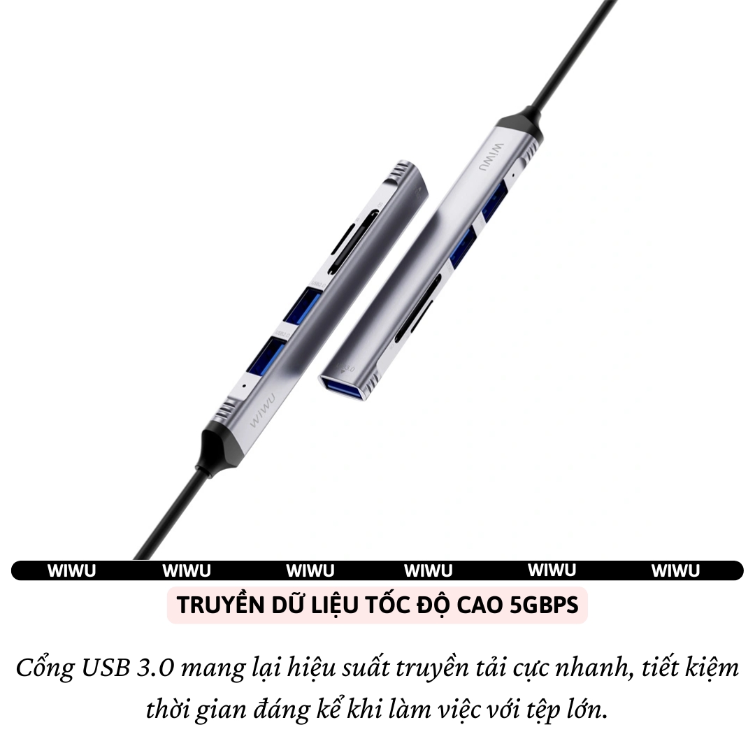 ✨Hub chuyển đổi chia cổng USB-C / USB-A 5in1 USB 3.0 + 2xUSB-A + Micro SD + SD hiệu WIWU Zolo cho Macbook Laptop cho iPhone - Hợp kim nhôm, nhỏ gọn, bền bỉ, đa năng truyền dữ liệu nhanh chóng - Hàng nhập khẩu