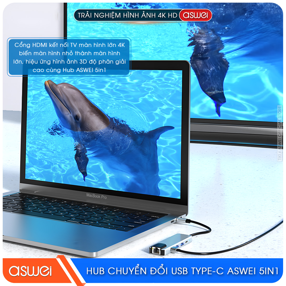 ✨Hub Chuyển Đổi USB Type C ASWEI 5 in 1 - HDMI, USB 3.0, Lan, PD 100W Tốc Độ Cao - Hàng Chính Hãng