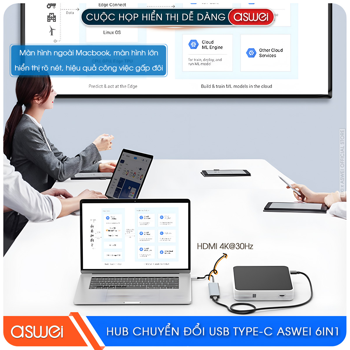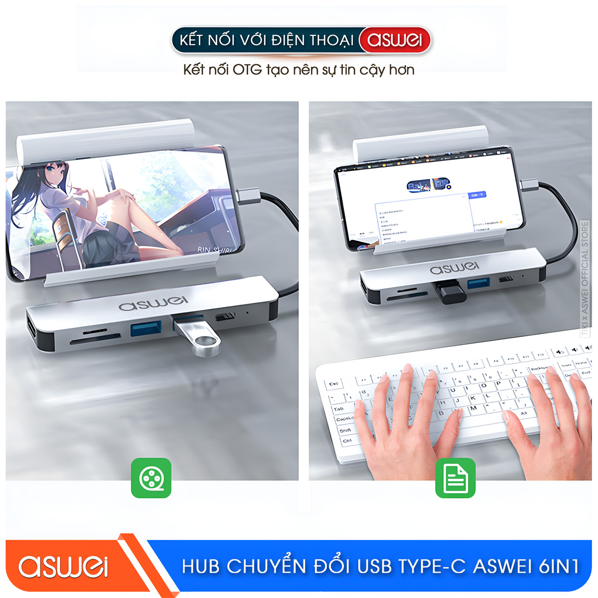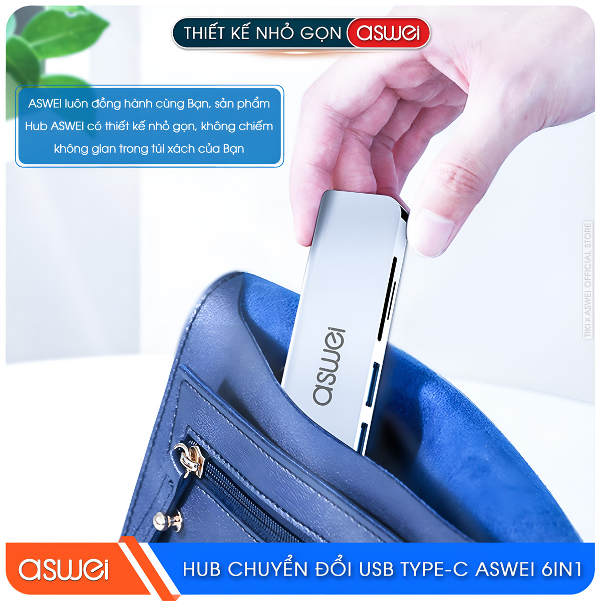 ✨Hub Chuyển Đổi USB Type C ASWEI 6 in 1 - HDMI, USB 3.0, SD, TF, PD 100W Tốc Độ Cao - Hàng Chính Hãng