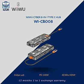 ✨HUB mở rộng hàng chính hãng WIWU Cyber Type C 8-in-1 Wi-CB008: Thiết kế trong suốt, đầy đủ cổng kết nối cho mọi tác vụ