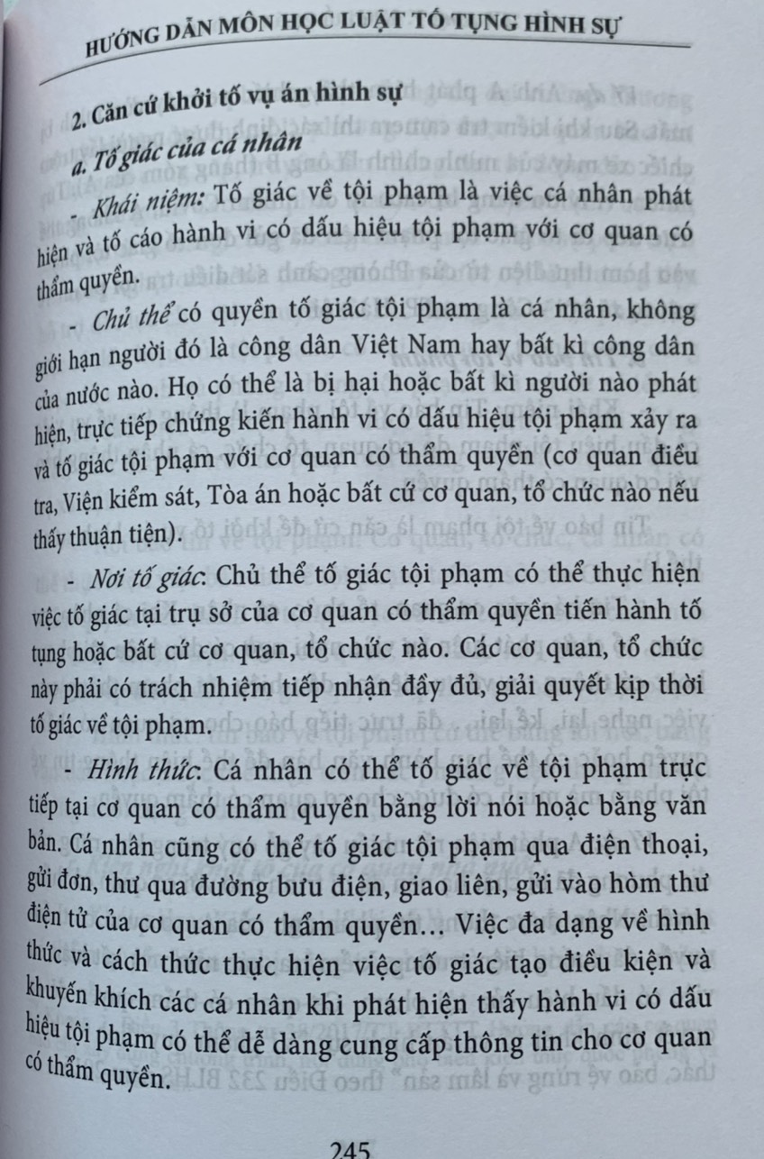 Để góp phần giúp các bạn sinh viên, học viên nắm họn vững hơn kiến thức của môn Luật Tố tụng hình sự, đặc sống, biệt sau khi có Luật sửa đổi, bổ sung một số điều của Bộ ad luật Tố tụng hình sự, chúng tôi xin trân trọng giới thiệu Đã đến bạn đọc cuốn “Hướng dẫn môn học Luật Tố tụng ng hình sự”. Cuốn sách được biên soạn trên cơ sở lý luận về irly 3 tố tụng hình sự, về Luật Tố tụng hình sự với tư cách là rin là một khoa học pháp lý, với nguồn cơ bản là Hiến pháp năm 2013, Bộ luật Tố tụng hình sự năm 2015, Luật Sửa hạn đổi, bổ sung một số điều của Bộ luật Tố tụng hình sự of si năm 2021 và những văn bản pháp luật khác về tố tụng 03 hình sự đã được ban hành. Chúng tôi hy vọng cuốn sách ghi sẽ cung cấp cho người học nguồn tài liệu cần thiết và hữu de lộ ích trong quá trình học tập và nghiên cứu môn Luật Tổ Bạn tụng hình sự trong các cơ sở đào tạo luật