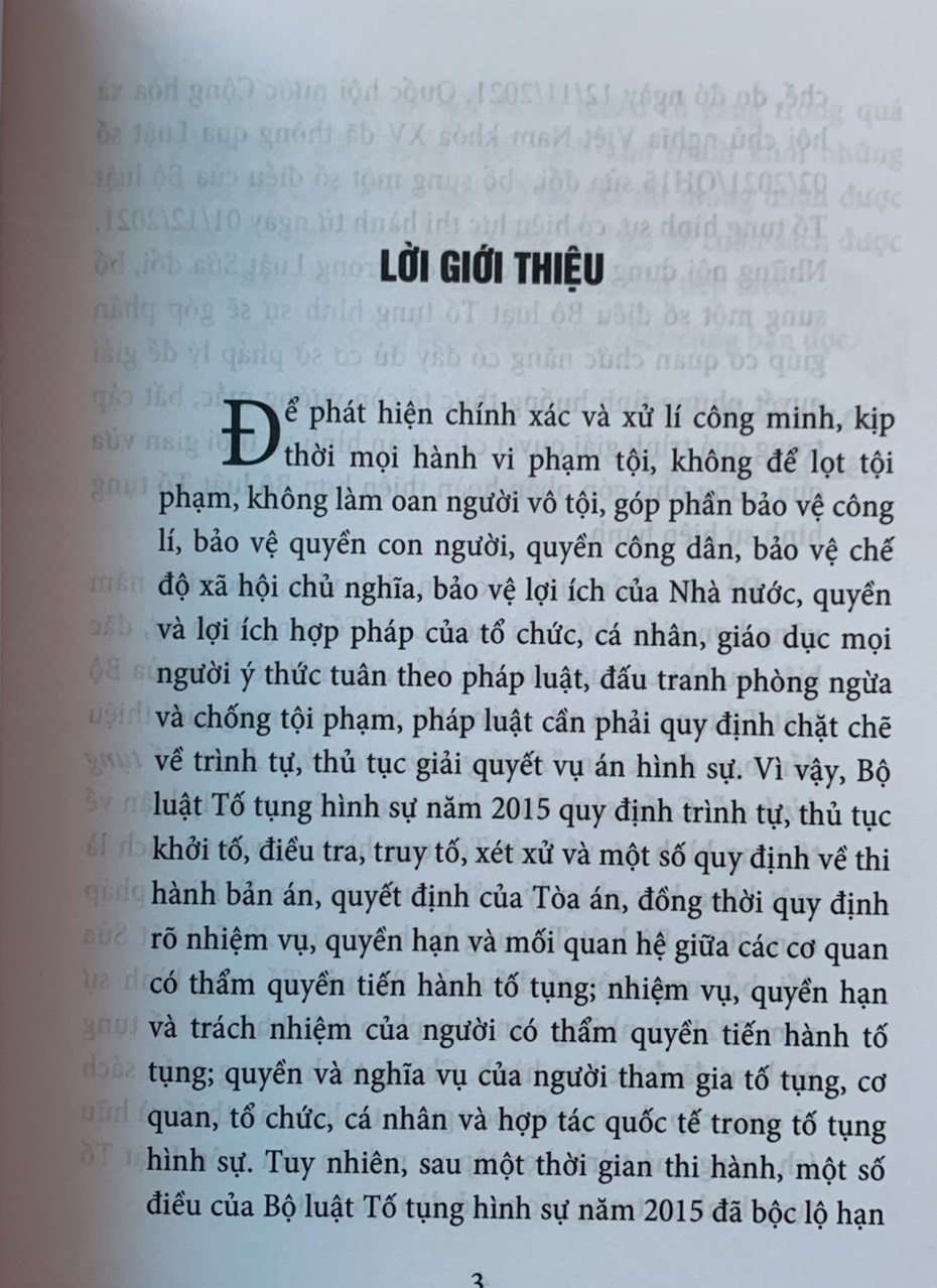 Phiên bản Bộ luật tố tụng hình sự năm 2015 (đính kèm 4 trang nội dung chỉnh sửa năm 2021), nên bạn đọc cân nhắc khi mua tham khảo Bộ luật tố tụng