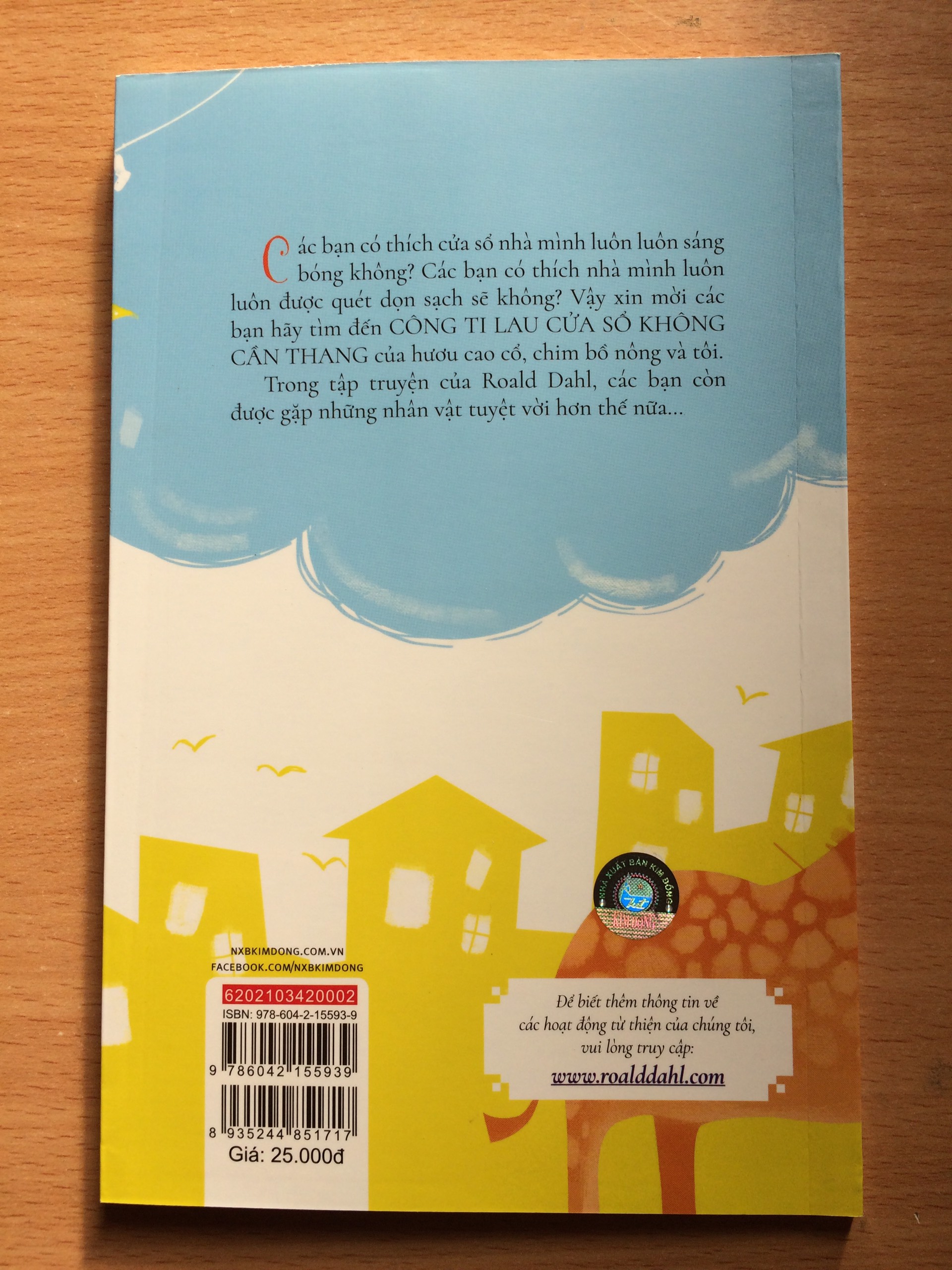 Các bạn có thích cửa sổ nhà mình luôn luôn sáng bóng không? Các bạn có thích nhà mình luôn luôn được quét dọn sạch sẽ không? Vậy xin mời các bạn hãy tìm đến CÔNG TI LAU CỬA SỔ KHÔNG CẦN THANG của hươu cao cổ, chim bồ nông và tôi.Trong tập truyện của Roald Dahl, các bạn còn được gặp những nhân vật tuyệt vời hơn thế nữa…