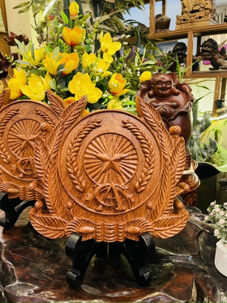 ✨Huy hiệu quân đội nhân dân trạm khắc bằng gỗ hương đá