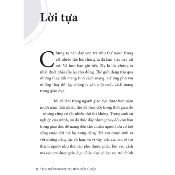 Cuốn sách là cái nhìn sâu và thấu đáo về những điều thật sự cần cho một nền giáo dục tiến bộ - một cuốn sách cần thiết cho các bậc cha mẹ, thầy cô và các nhà hoạch định chính sách, những người quan tâm đến giáo dục và thật sự mong muốn tạo ra những thay đổi tích cực để kiến tạo một tương lai tốt đẹp hơn cho tất cả.