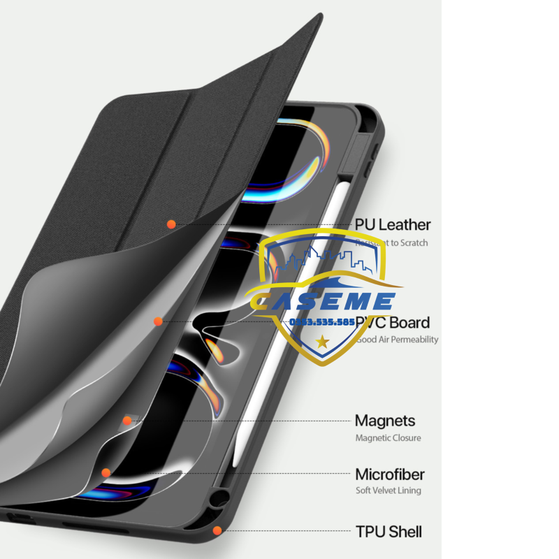 Bao da chống sốc cho iPad Air M2 13 inch 2024 chính hãng Dux Ducis Domo có ngăn để bút là thiết kế mới của hãng Dux Ducis với vẻ đẹp thời trang cao cấp cùng tính