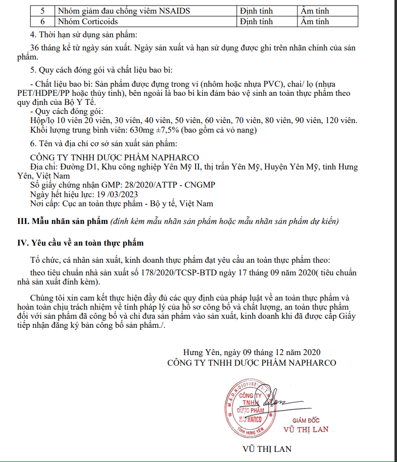 THÀNH PHẦN: Bột đương quy (Angelica sinensis) ..68 mg Cao độc hoạt (Radix Angelicae) ...80 mg Cao ngưu tất (Radix Achyranthis bidentatae) ..48 mg Bột phòng phong (Radix Ledebouriellae) ..80 mg Cao thổ phục linh